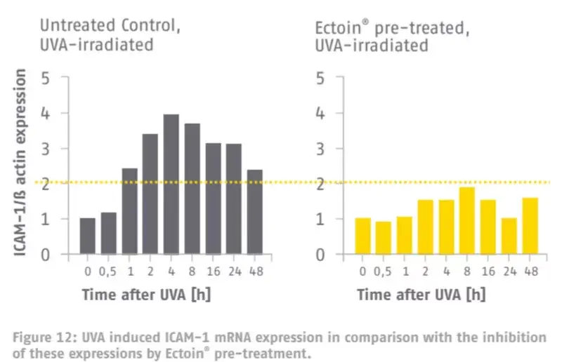 さらに、エクドリンは、UVA(長波紫外線)照射によって引き起こされる連鎖反応を防ぎ、UVAによって誘発されるmt-DNA変異を防ぐこともできます。