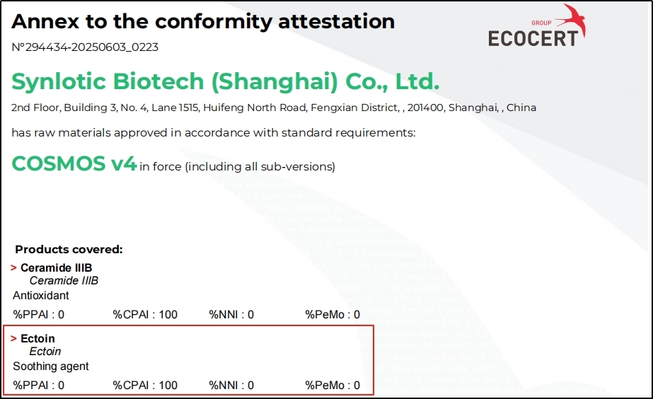 最近、上海雲洛社が生産するYikeduoyinは、フランスのECOCERTから付与されたEU COSMOS天然認証を取得しました。